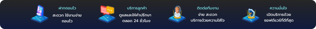 ตอบ : คือระบบการประมวลผลธุรกรรมอัตโนมัติที่รวดเร็วที่สุดในตลาด พร้อมการออกแบบอินเทอร์เฟซที่เน้นความเรียบง่ายเพื่อให้ผู้เล่นเข้าถึงเกมเดิมพันได้ภายใน 3 คลิก